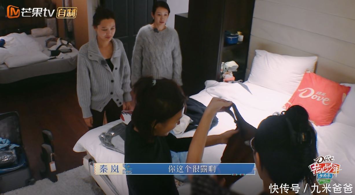 比较迪丽热巴,秦岚更有执行力,她干脆把泳衣套在我方衣服外面,穿给各人看。