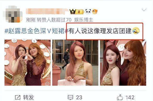 与北京三里屯行为时的状态比较,这次赵露念念实在好了许多。至少这个泄气造型比上一次的大光明好意思瞻念不少。但那红色头发实在让东谈主说来话长。它料想如故前次行为时染的,几天往常,发根处还是长出不少黑发,何况红色掉色严重,看起来不仅毫无质感,还尽头非主流,完全不稳妥女明星应有的高超妆造。甚而有网友玩弄,这个行为看起来更像是“剪发店团建”,这评价实在是让东谈主大跌眼镜。